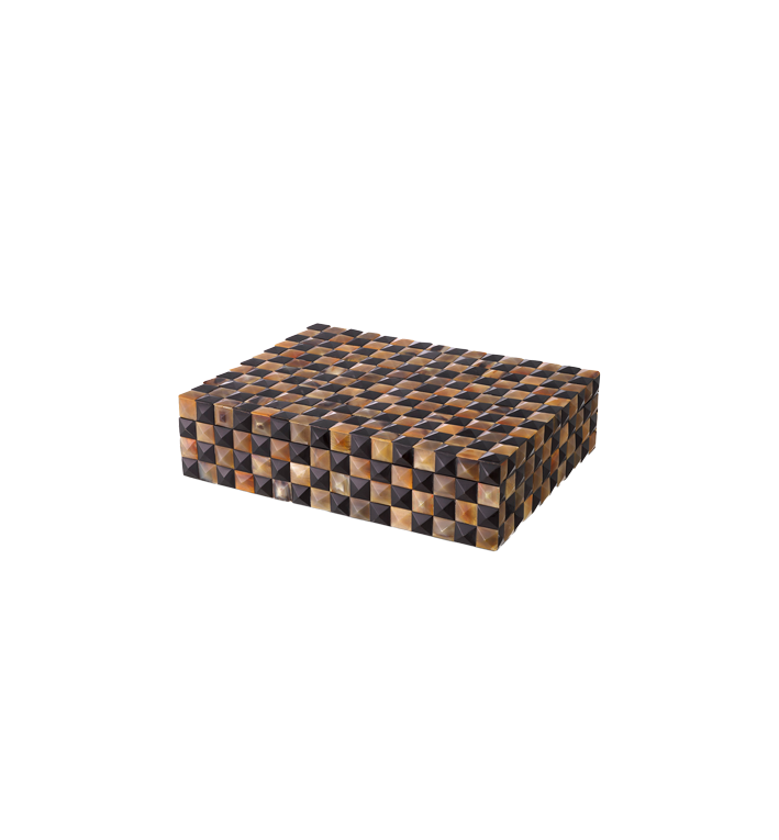 Experimente la fusión de sofisticación y artesanía con el cuerno Eichholtz Box Magician L. Esta exclusiva pieza presenta un acabado de cuerno multicolor, que le da un toque icónico y atemporal. Más que una simple caja de accesorios de lujo, es una cautivadora solución de almacenamiento que combina funcionalidad con belleza natural. Cada pieza es única, con variaciones de color y textura, a la vez que ofrece amplio espacio para sus objetos más preciados.