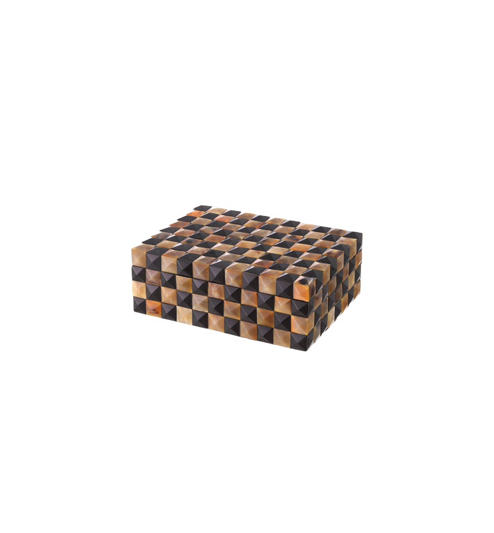 Experimente la fusión de sofisticación y artesanía con el cuerno Eichholtz Box Magician S. Esta exclusiva pieza presenta un acabado de cuerno multicolor, que le da un toque icónico y atemporal. Más que una simple caja de accesorios de lujo, es una cautivadora solución de almacenamiento que combina funcionalidad con belleza natural. Cada pieza es única, con variaciones de color y textura, a la vez que ofrece amplio espacio para sus objetos más preciados.