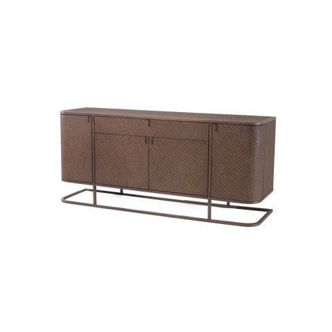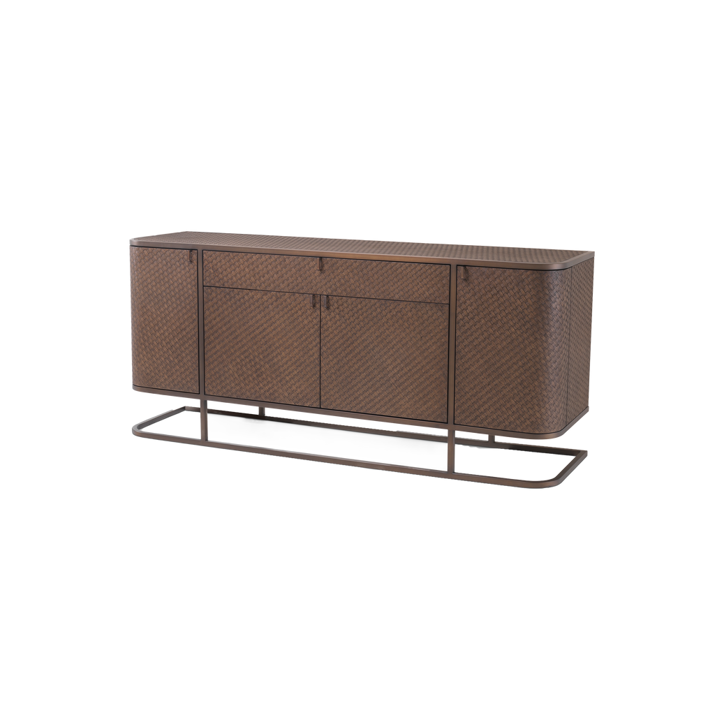 Combinando el estilo Bauhaus con un aspecto moderno de mediados de siglo, la cómoda Napa Valley exhibe un elegante marco de acero inoxidable. Está revestido con chapa de roble tejido y contiene 4 puertas y un cajón con tirador de acero inoxidable.