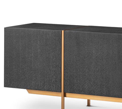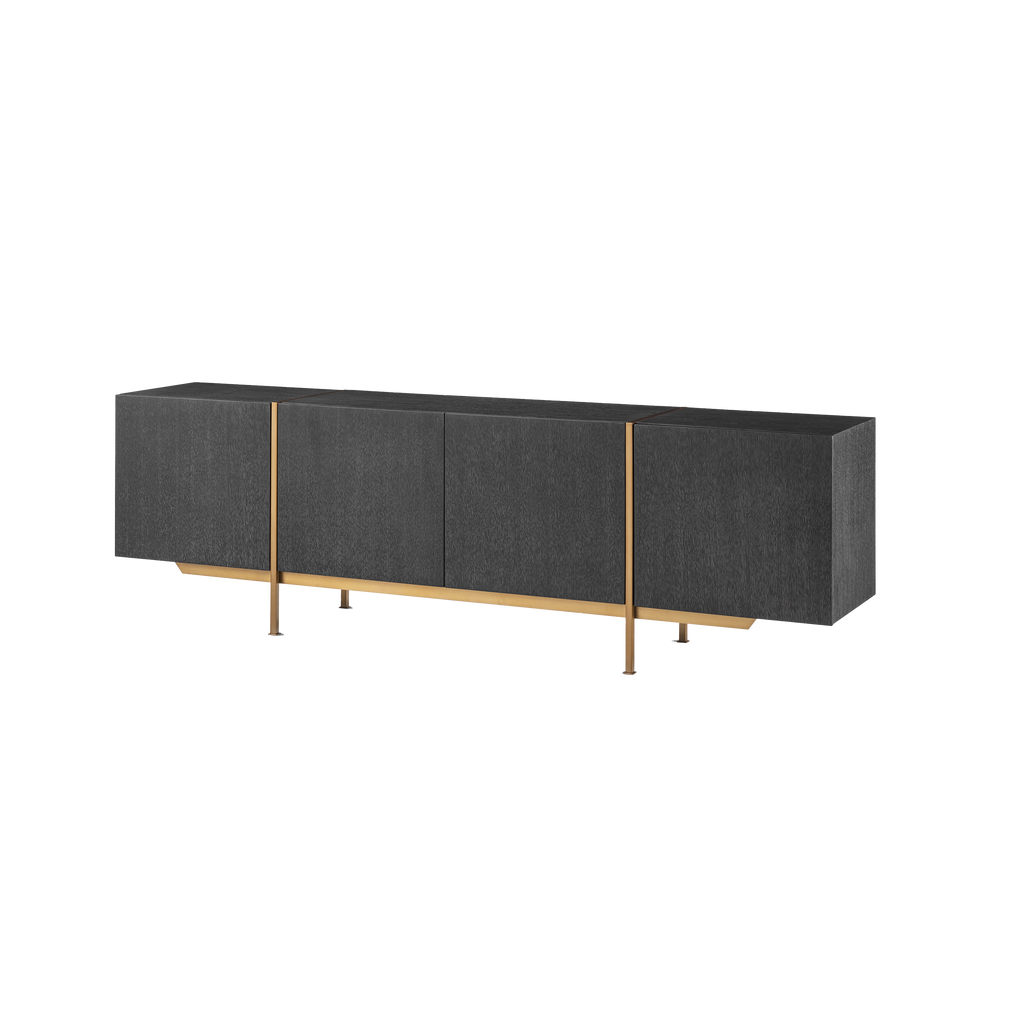Adornada con una sofisticada chapa de roble gris carbón, esta cómoda irradia elegancia y estilo. El marco de latón se extiende maravillosamente puertas en la parte superior, añadiendo un toque de opulencia al diseño. Adopte funcionalidad y lujo con el Aparador Bazilian, una solución de almacenamiento perfecta que realza su dormitorio.