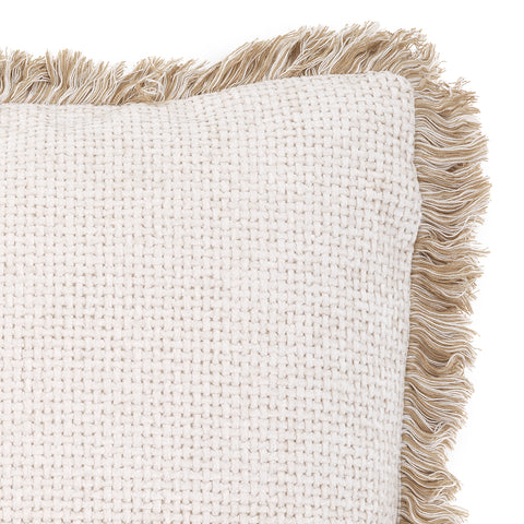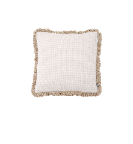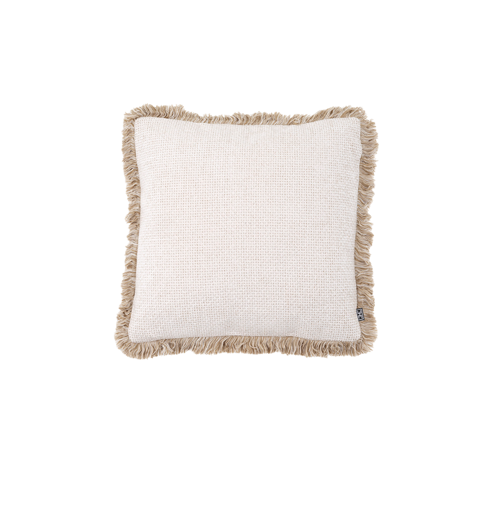 Déjate llevar por tu gusto por el lujo con la pequeña almohada Nami. Este cojín cuadrado tiene esquinas redondas y una suave funda Lyssa en blanco roto con flecos color crema. Hará que tu cama o sala de estar sea acogedora al istante.