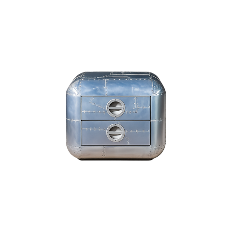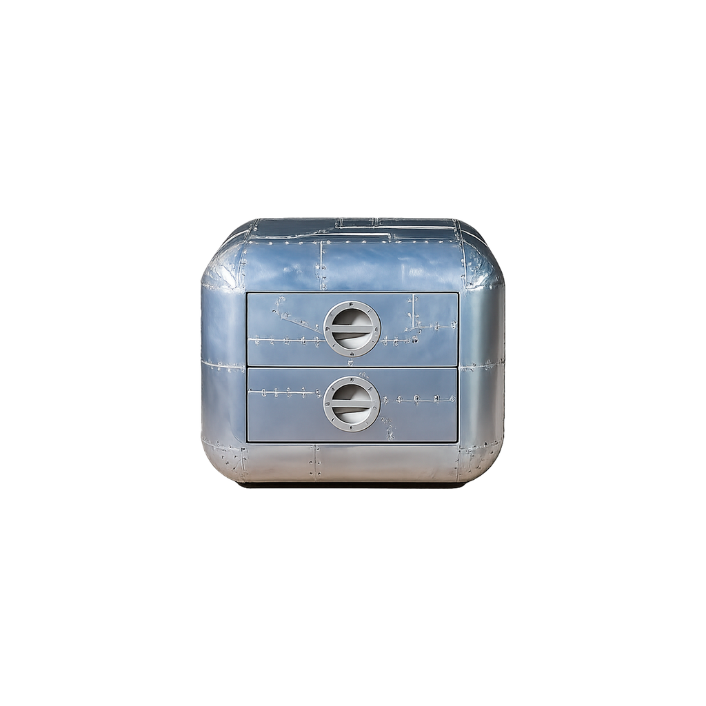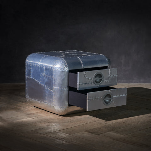La colección Aviator Blackhawk es una gama de estilo industrial inspirada en dos aeronaves militares diferentes, fusionadas en una impresionante pieza de artesanía. Los bordes redondeados y los tiradores únicos de la mesa auxiliar Aviator Blackhawk recuerdan las líneas curvas del famoso helicóptero Black Hawk, mientras que el acabado Spitfire se inspira en el histórico avión de combate Spitfire. Haciendo eco de la construcción de paneles de aluminio entrelazados con múltiples remaches del Spitfire, el metal se somete a un proceso de acabado de cinco etapas para crear una impresión de metal desgastado y envejecido. Tenga en cuenta que el acabado Spitfire presenta variaciones en el desgaste de la superficie, que pueden variar de una pieza a otra.