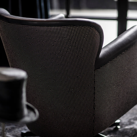 La clásica silla Professor presenta su nuevo álter ego: la silla retro Punk Professor. Vestida en resistente cuero Safari Black con respaldo con tachuelas plateadas, la Punk Professor revive el espíritu del rock and roll de los 70, cuando una nueva ola de bandas de punk rock irrumpió en la escena musical londinense. Compacta para cualquier rincón, pero con la personalidad suficiente para ser la protagonista, la Punk Professor también está disponible con un reposapiés de cuero Safari Black, para que puedas relajarte y disfrutar de la música.