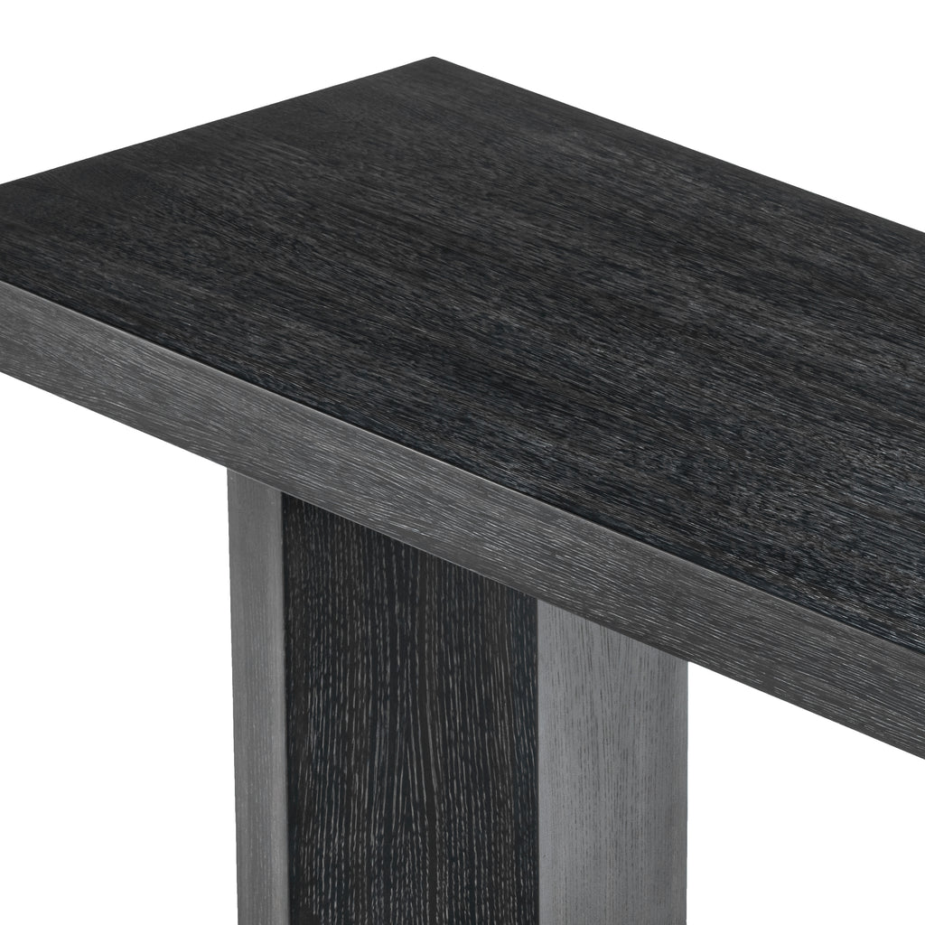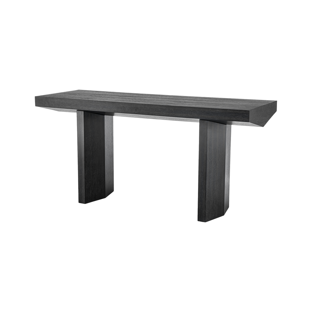Presentamos la mesa consola Tiburon de Eichholtz, una exquisita incorporación a cualquier espacio habitable sofisticado. Esta pieza exhibe las elegantes líneas del diseño moderno en chapa de roble gris antracita, reflejando lujo y refinada artesanía. Realce su interior con esta icónica pieza de mobiliario de la marca Eichholtz.