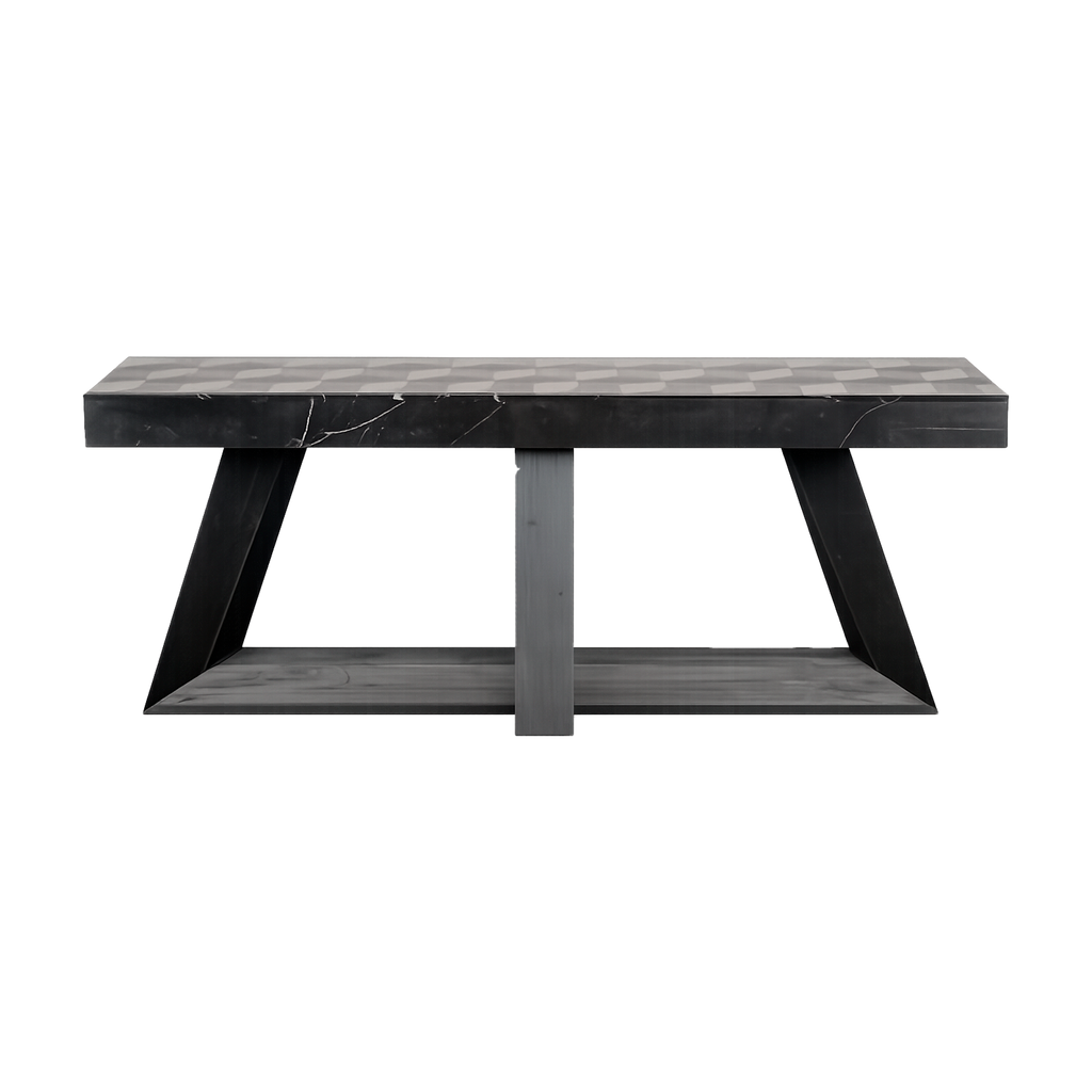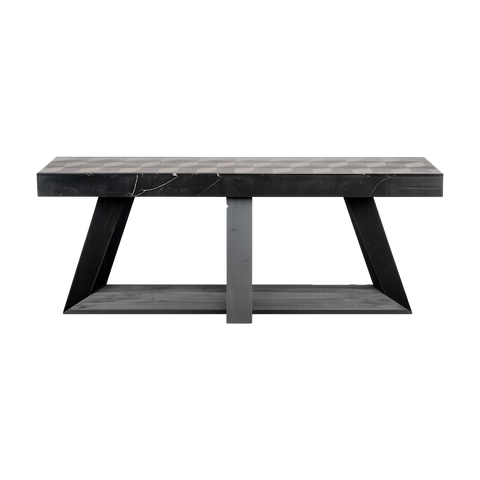 La consola Zodiac traslada el clasicismo antiguo del mármol a una nueva y glamurosa forma. La encimera de mármol conserva toda la elegancia tradicional de este material duradero y atemporal, mientras que la distintiva base geométrica, hecha a mano en madera negra, aporta un toque vanguardista a los interiores modernos.