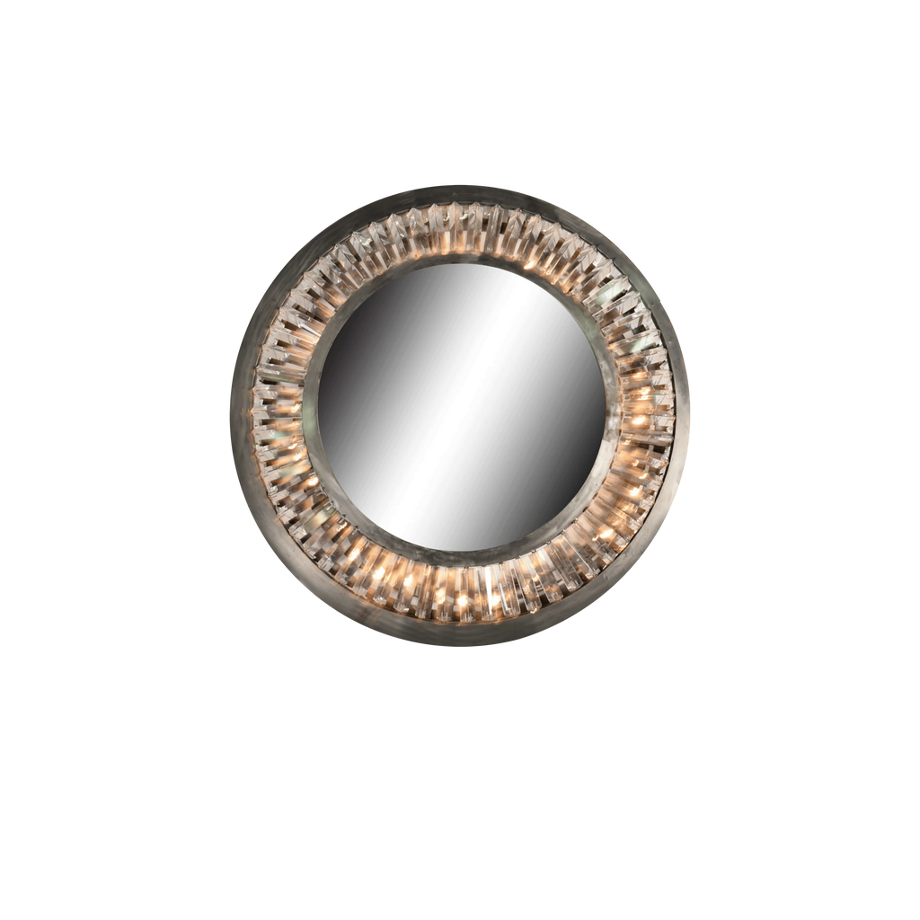 Estimula tus sentidos con la colección Rex de Timothy Oulton, una espectacular gama de iluminación, espejos y muebles que captura el romanticismo de 1920 París. Cada pieza única está hecha a mano a partir de baguettes prismáticas hecho de vidrio óptico, refractando la luz en una danza perpetua de brillar y brillar. Poniendo un marco de hierro soldado en bruto con el brillo de cristales. Dirigido por influencias Art Deco. La colección captura el romance del pasado pero lo infunde con un punto de vista fresco para una versión completamente moderna del glamour.