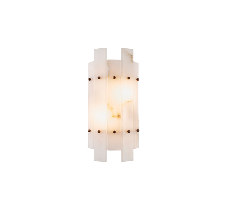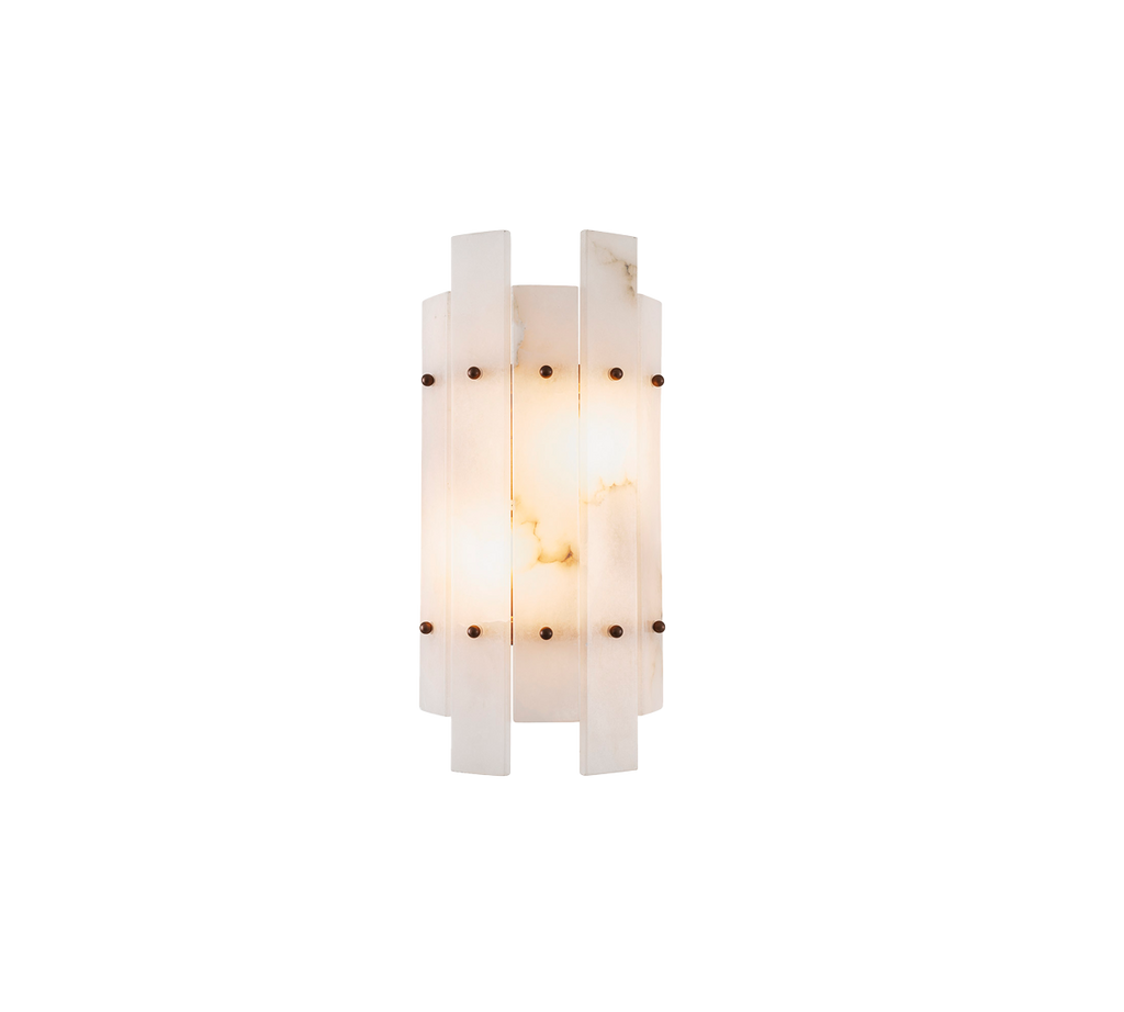 La lámpara de pared Ruby aporta un toque de estilo vintage al tiempo que proyecta un brillo cálido sobre cualquier espacio de tu hogar. Este aplique de pared de 2 luces presenta un acabado de latón antiguo y una pantalla semicircular de placas de alabastro translúcido.