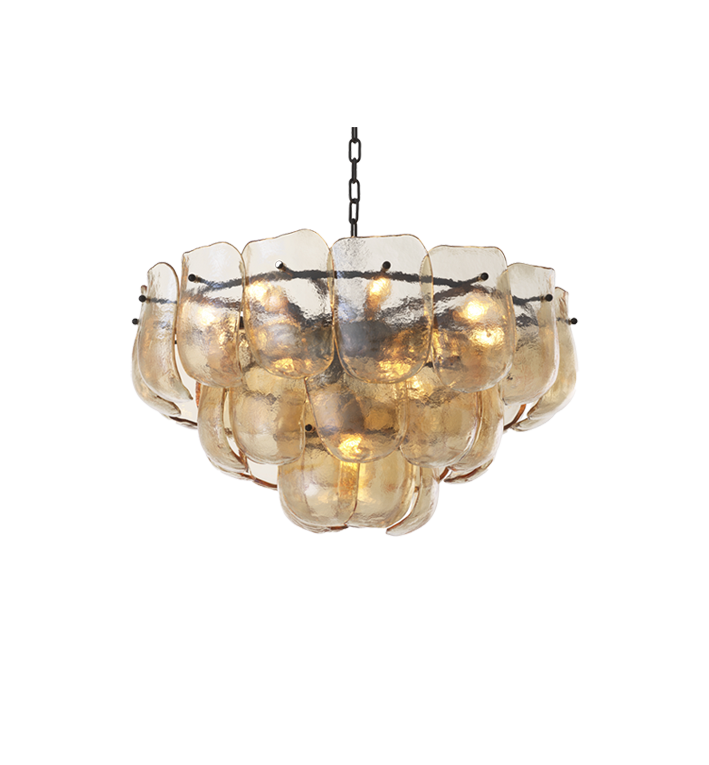 Esta lujosa lámpara presenta un vidrio color champán yuxtapuesto con un acabado en bronce audaz, que emana un brillo seductor. El diseño de vidrio grueso aporta un toque de grandeza, lo que garantiza una pieza llamativa. Perfecto para quienes aprecian la elegancia refinada, esta lámpara ilumina su entorno con una sofissticación atemporal.