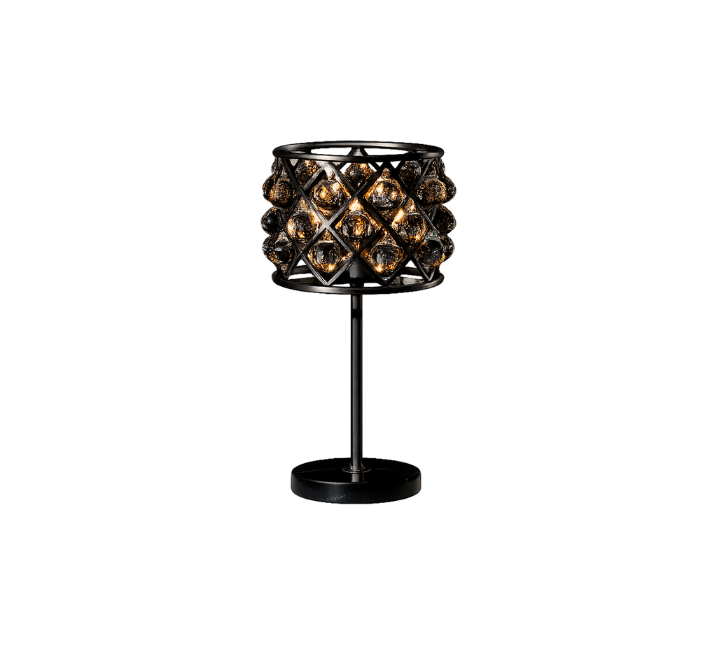 La lámpara de mesa ZigZag presenta delicadas esferas de vidrio pulido a mano suspendidas de un intrincado esqueleto de hierro. Como una galaxia de planetas suspendidos, cada esfera hace rebotar los reflejos y refracciones de las demás para crear un caleidoscopio de patrones.