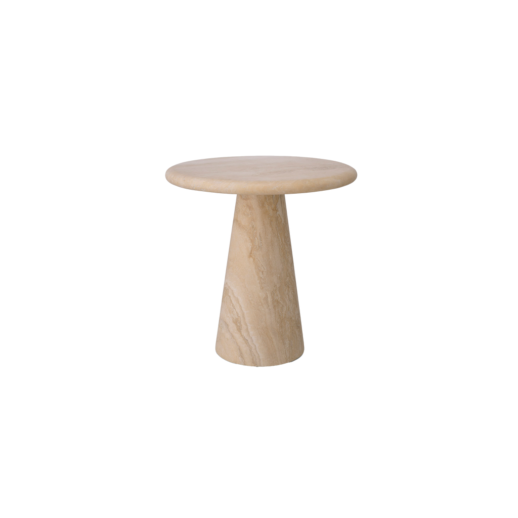 Al combinar la belleza de la naturaleza con un diseño simple, la mesa auxiliar Adriana es una adición de buen gusto a cualquier decoración contemporánea. Fabricada de Travertino, una piedra caliza terrestre, esta mesa auxiliar escultural presenta una parte superior redondeada que descansa sobre una base cónica. Con sus hermosas líneas curvas, eleva la estética de cualquier ambiente.