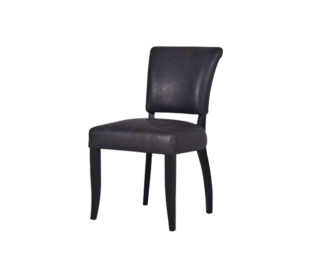 La silla de comedor Mimi es una reinvención de una clásica silla francesa de los años 40, con detalles de tachuelas y patas cónicas de madera. Este lujoso estilo clásico cuenta con un respaldo ligeramente acampanado y un asiento acolchado para mayor comodidad, ideal para disfrutar de una cena con amigos durante horas.