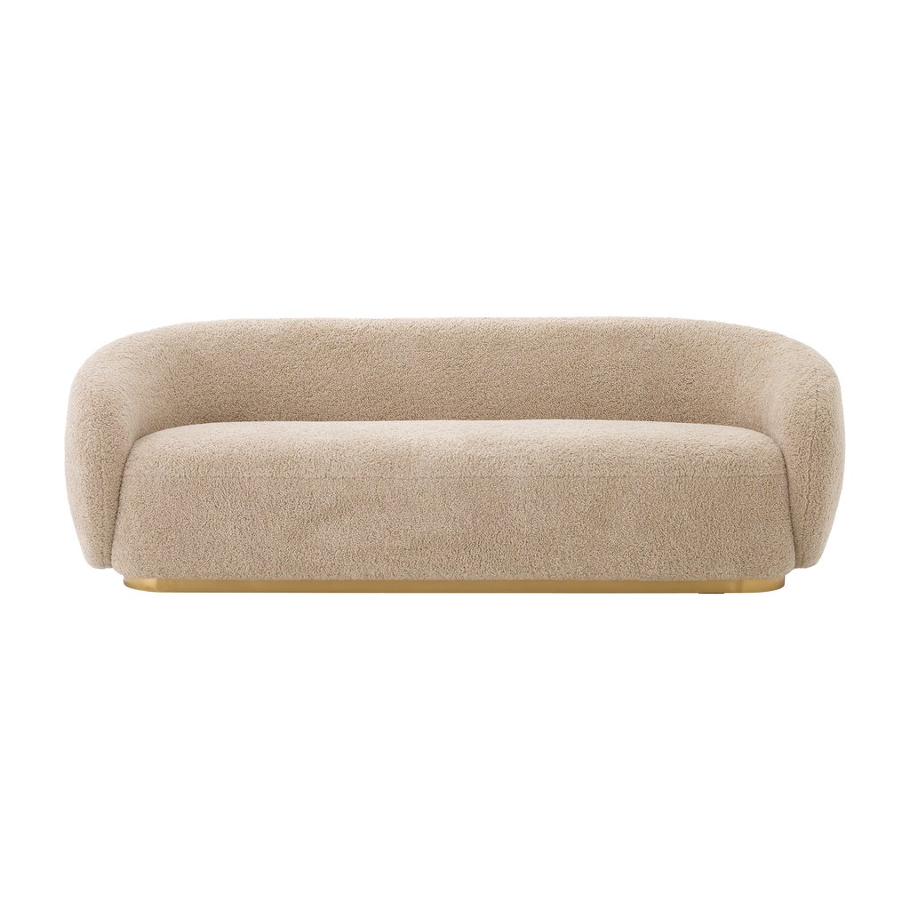 Relájate en el sofá Brice, un sofá elegante para tu sala de estar. Acogedor y contemporáneo, este sofá curvo tapizado en Canberra color arena cuenta con una base de color bronce cepillado.