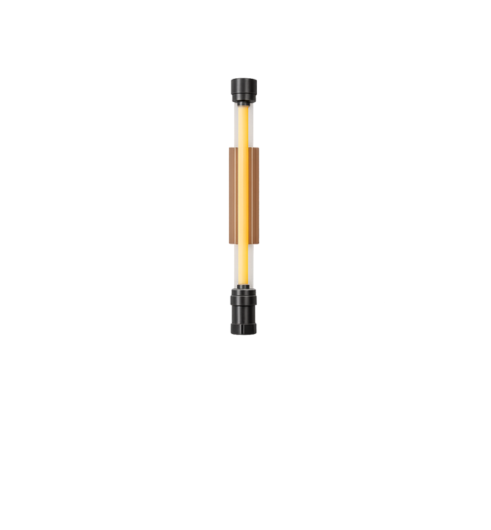 El aplique Flex está inspirado en una lámpara vintage de los años 70 que Tim encontró en una subasta. Con un aire a la iluminación industrial de tubos fluorescentes, Flex ha sido readaptado con un toque más apacible, irradiando una luz suave y relajante gracias al uso de LED.