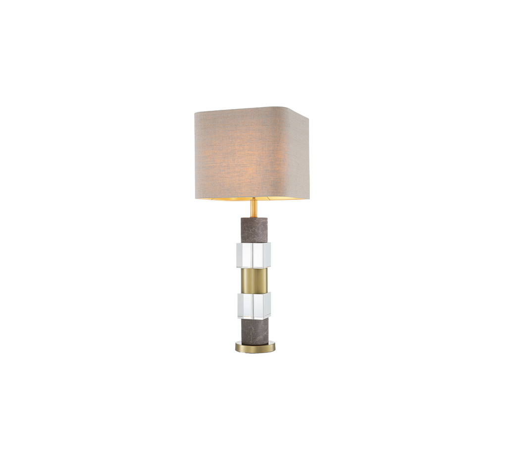Crea un aspecto elegante y contemporáneo con la lámpara de mesa Cullingham. La base consta de dos cilindros de mármol gris, dos cubos de cristal macizo, un cilindro con acabado de bronce envejecido y pantalla de lino. Con una mezcla de tonos neutros y texturas, esta llamativa lámpara de mesa quedará bien en ambientes modernos y minimalistas.