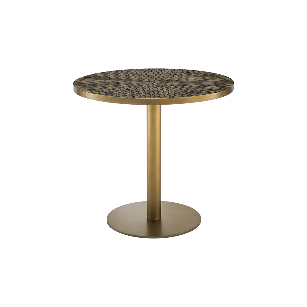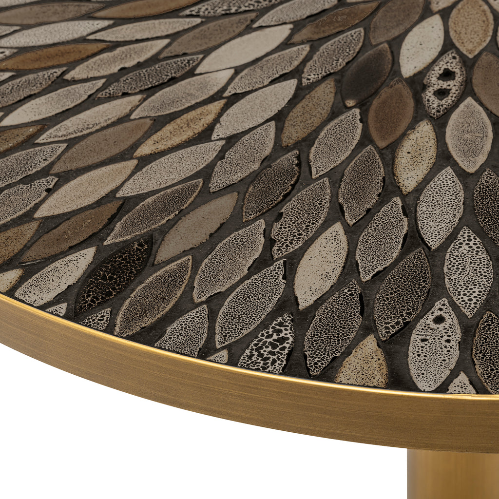 Mejore su espacio de comedor con la mesa de comedor Declan, que presenta un llamativo acabado de latón antiguo y una sofisticada incrustación de cerámica marrón. Esta obra maestra redonda combina a la perfección lujo y funcionalidad, creando un ambiente de estilo bistró. Ideal para quienes adoran la elegancia refinada, su diseño atemporal transforma cualquier ambiente en un ejemplo de sofisticación chic.
